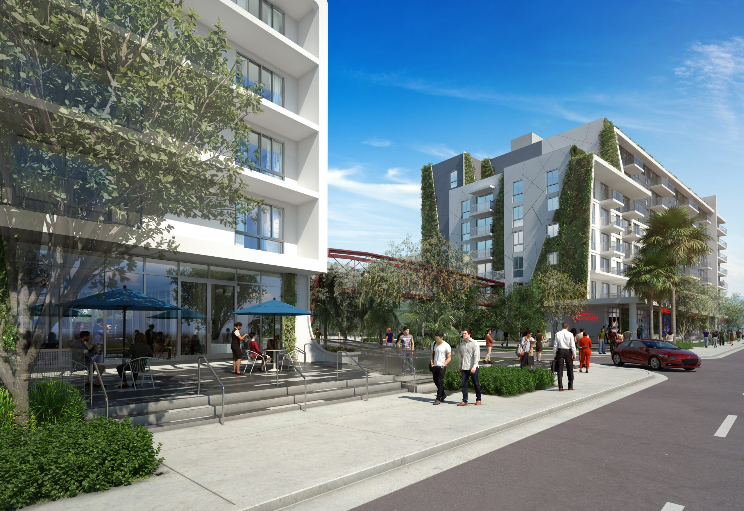 The development team includes Corwil Architects and contractor ANF Group Inc. HSQ Group will serve as the civil engineer, BNI Engineers will serve as the structural engineer, and RPJ Inc., Consulting Engineers will serve as the MEP engineer. Interior design will be done by B. Pila Design Studio, with landscape design by Witkin Hults + Partners. Kaller Architecture will serve as the interior designer for Barry University’s space within the development.