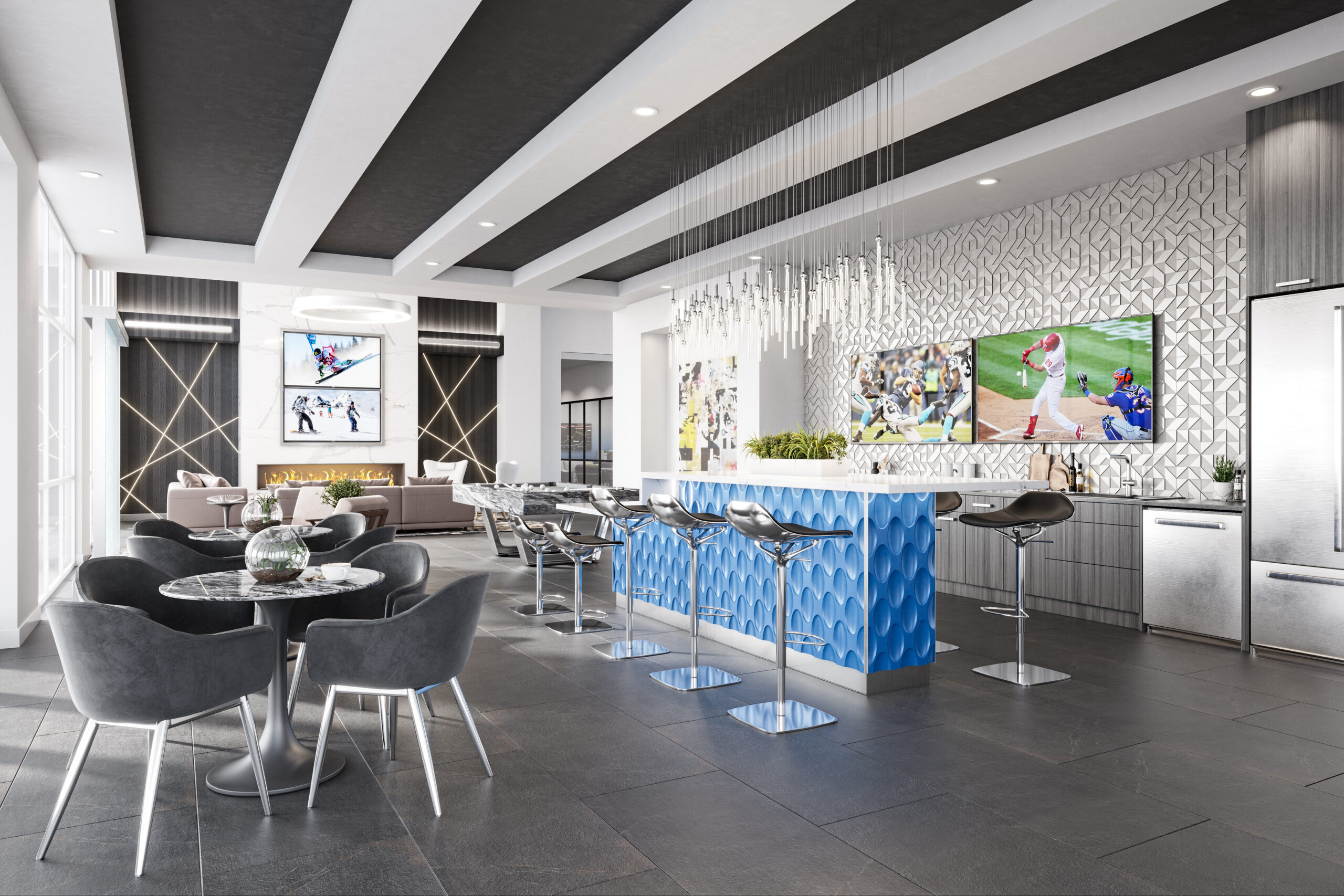 The community has two swimming pools – a 150-foot resort-style swimming pool with a spa, and a second swimming pool with a spa – both surrounded by ultra-chic cabana beds, chaise lounge chairs, fire pits, barbeques and outdoor games. A 10,000-square-foot clubhouse includes a media and game room, custom billiard tables, and co-working spaces with a private conference room.